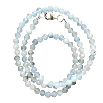 Náhrdelník vyrobený z fazetovaných korálků akvamarínu o velikosti 4 mm.