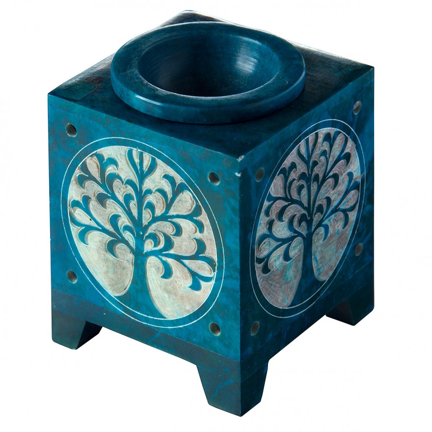 Aromalampa tyrkysové barvy s vyrytým symbolem Stromu života.