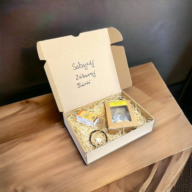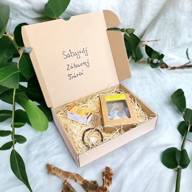 Balíček pro Lva obsahuje: Drahokamovou sadu Slunečný den, vonný olej do aromalampy Palo Santo, drahokamový náramek Tygří oko, kámen Zkamenělé dřevo.