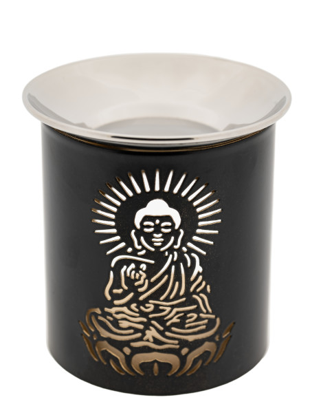 Kadidelnice s vyobrazením Buddhy a nerezovou miskou. Vhodná na vykuřování a očistu prostoru. Uhlík je vhodné podložit pískem, který zachytí největší žár.