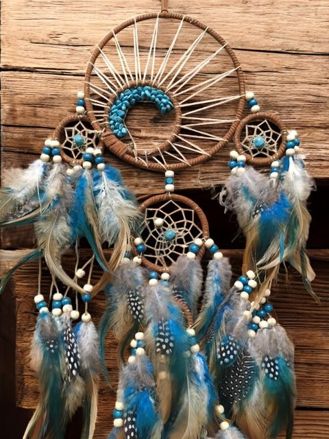 Průměr lapače snů: cca 16 cm, celková délka: cca 60 cm.