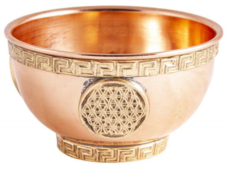 Po obvodu kadidelnice je vyrytý symbol Květ života.