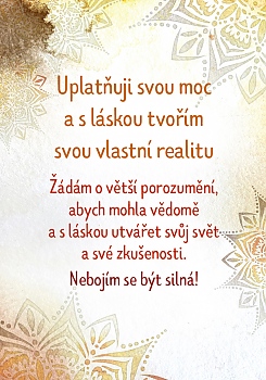Co si myslíte právě teď? Chcete-li žít život ve své síle, je zapotřebí, abyste do své mysli “nainstalovali” Myšlenky síly – a právě k tomu vám mohou skvěle pomoci tyto inspirační karty. Vytáhněte si každé ráno kartu na celý den a afirmaci noste v mysli tak dlouho, dokud s vámi zcela nesplyne.