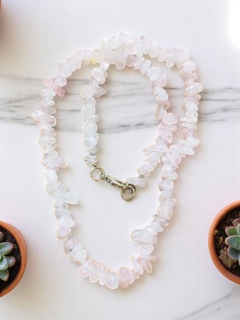 Náhrdelník vyrobený ze sekaných korálků růženínu.