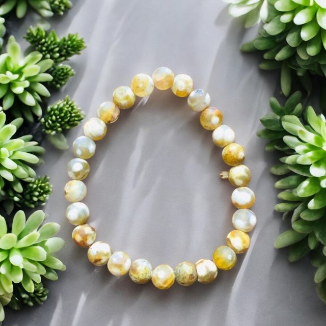 Náramek vyrobený z matných korálků achátu ohnivého o průměru 8 mm. Kameny jsou vrtané a navlečené na pružné gumičce. Každý kamínek je originál, proto se každý náramek může v detailu lišit.