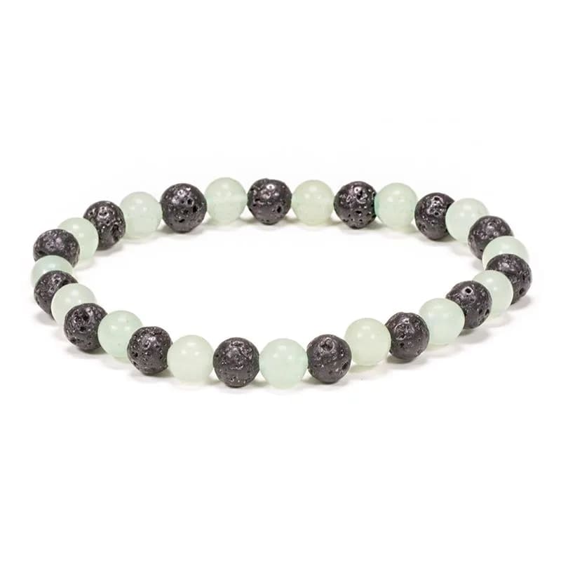 Náramek navlečený na pružné gumičce, kombinace kamenů aventurínu a lávy.