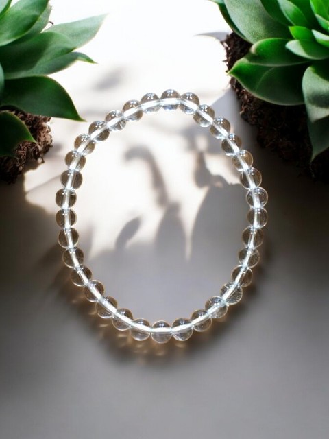 Náramek vyrobený z korálků křišťálu o průměru 6 mm. Kameny jsou vrtané, navlečené na ˇpružné gumičce. Každý kamínek je originál, proto se každý náramek může v detailu lišit.