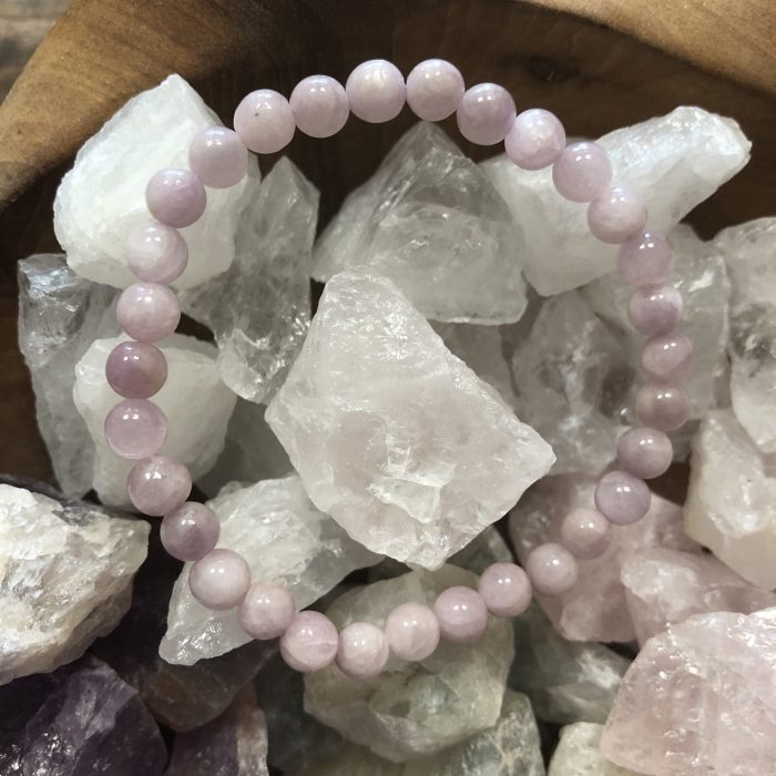 Náramek z kunzitu, kamínky o průměru 6 mm. Délka: univerzální velikost díky gumičce. Je vhodný i ke každodennímu nošení.