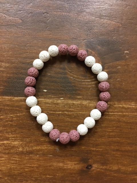 Náramek Lávový kámen, bílý-růžový