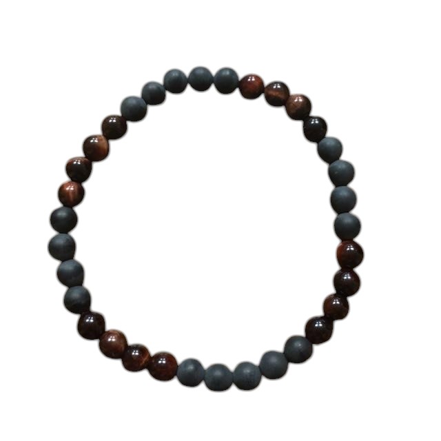 Náramek vyrobený z korálků onyxu a býčího oka průměru 6 mm. Kameny jsou vrtané, navlečené na pružné dvojité gumičce. Každý kamínek je originál, proto se každý náramek může v detailu lišit.