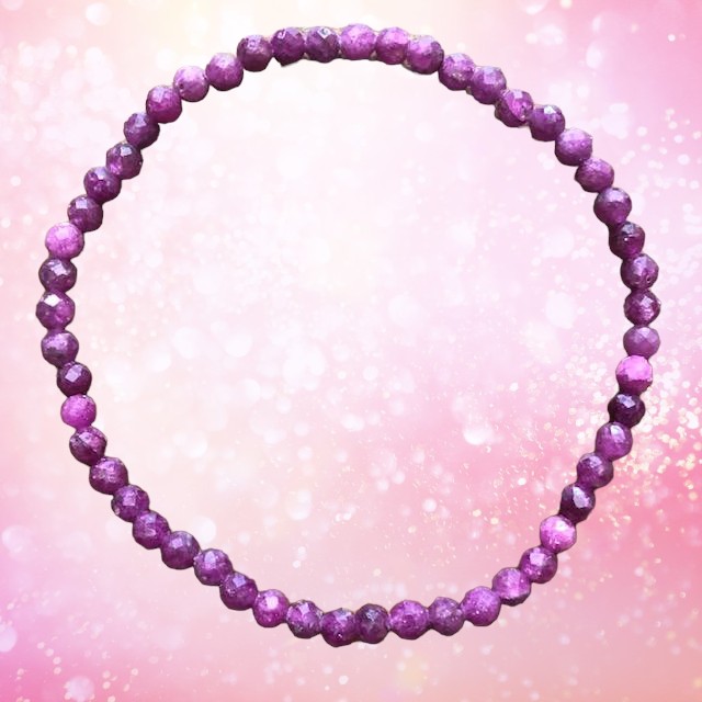 Náramek z fazetovaných kamínků rubínu o průměru 4 mm.