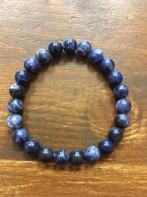 Náramek ze sodalitu o velikosti kamínků 8 mm.