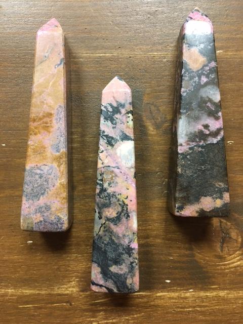 Obelisk Rodonit. Velikost: cca 12,5 x 2,5 x 2,5 cm