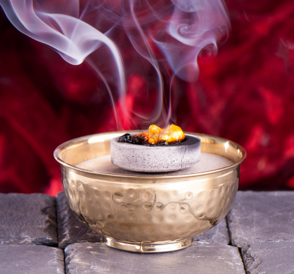 Tepaná mosazná kadidelnice.