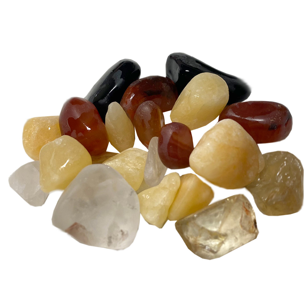 Složení: oranžový kalcit, karneol, citrín, křišťál, černý obsidián