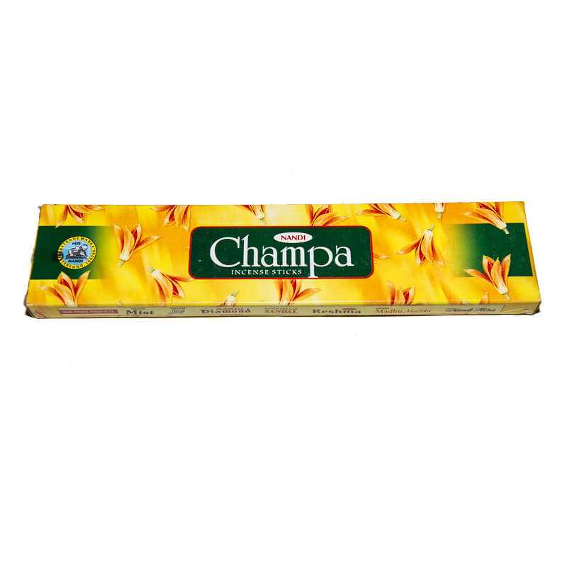 Ručně vyráběné a balené indické vonné tyčinky s vůní tropických květů Champa. Květy jsou pro jejich sladkou romantickou vůni používány v Laosu ke zdobení klášterů.